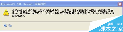 一:安装sql server 2005过程中出现如下问题:“选择的功能中没有任何功能可以安装或升级”: