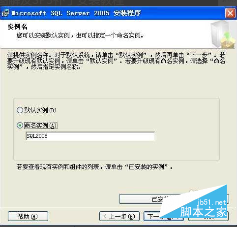 8.如果你原来机器上有sql server2000,请不要选默认实例,你选了默认的实例后,将会指向sql server2000的实例,这样会对后续使用SQL2005很不利;如果之前没有安装过其它版本的数据库,推荐选择默认实例。