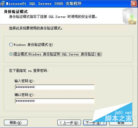 10.选择身份验证模式,一般选择混合模式,然后设置sa用户密码,此密码是安装完成后sa登录的密码。