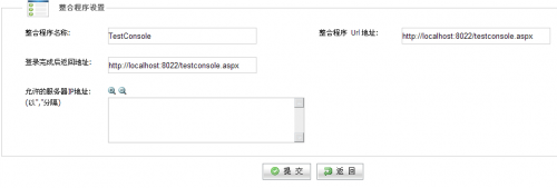 整合程序 Url 地址: (例如:http://127.0.0.1:8022/TestConsole.aspx)
