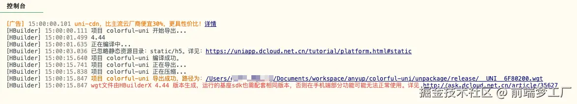 打包结束会在控制台输出 wgt 升级包的具体位置