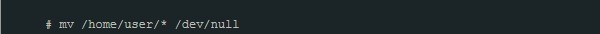 这个命令会移动某个‘文件夹‘到/dev/null。在Linux中 /dev/null 或 null 设备是一个特殊的文件,所有写入它的数据都会被清除,然后返回写操作成功。(译注:这就是黑洞啊。当然,要说明的是,通过将文件夹移动到黑洞,并不能阻止数据恢复软件的救赎,所以,真正的彻底毁灭,需要采用专用的软件或者手法来完成——我知道你肯定有些东西想删除得干干净净的。)
