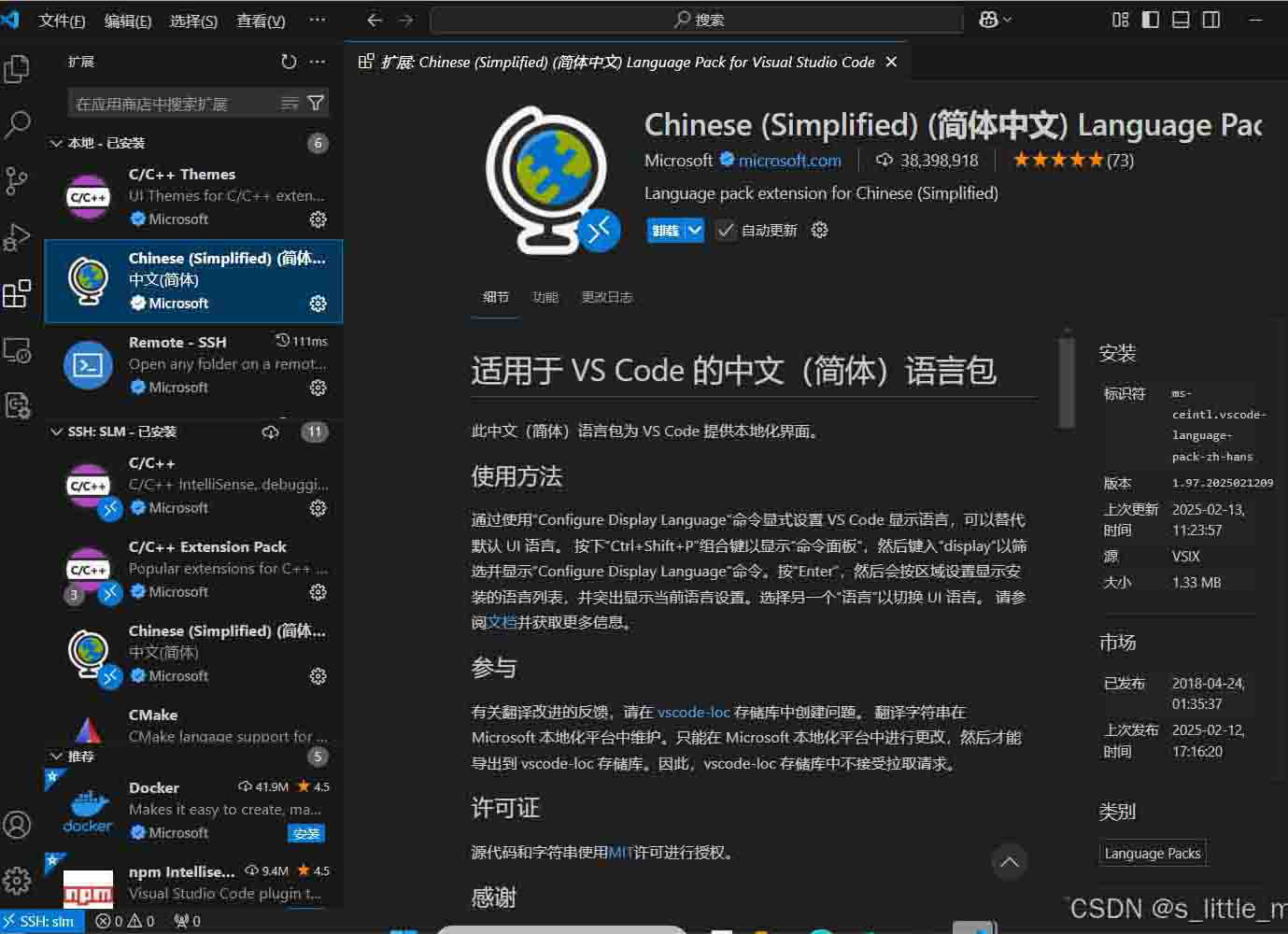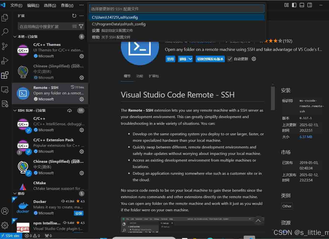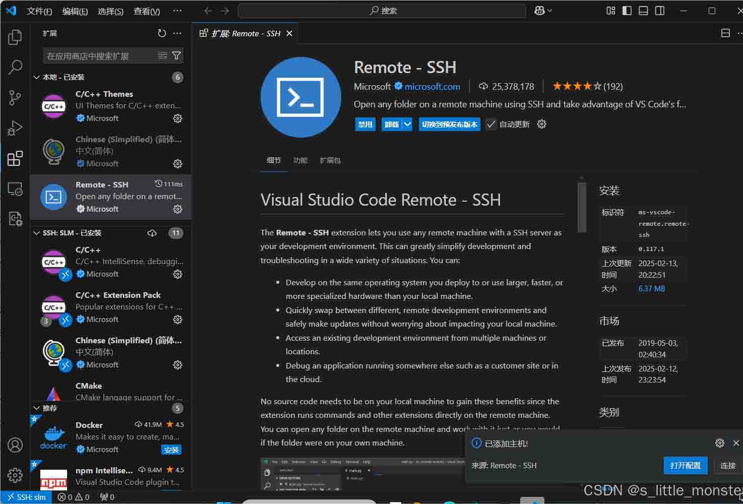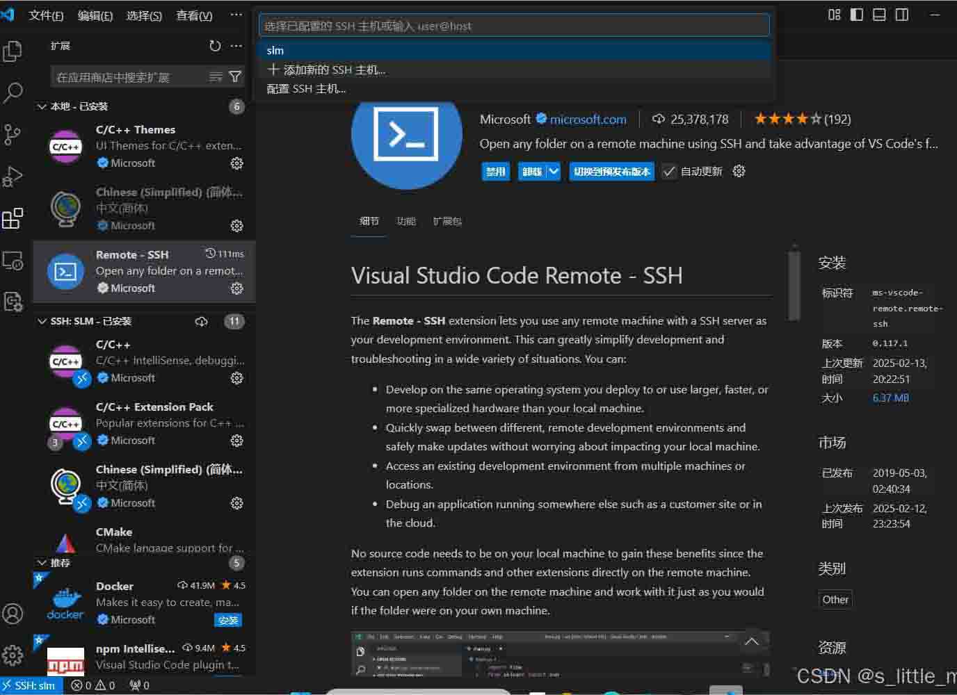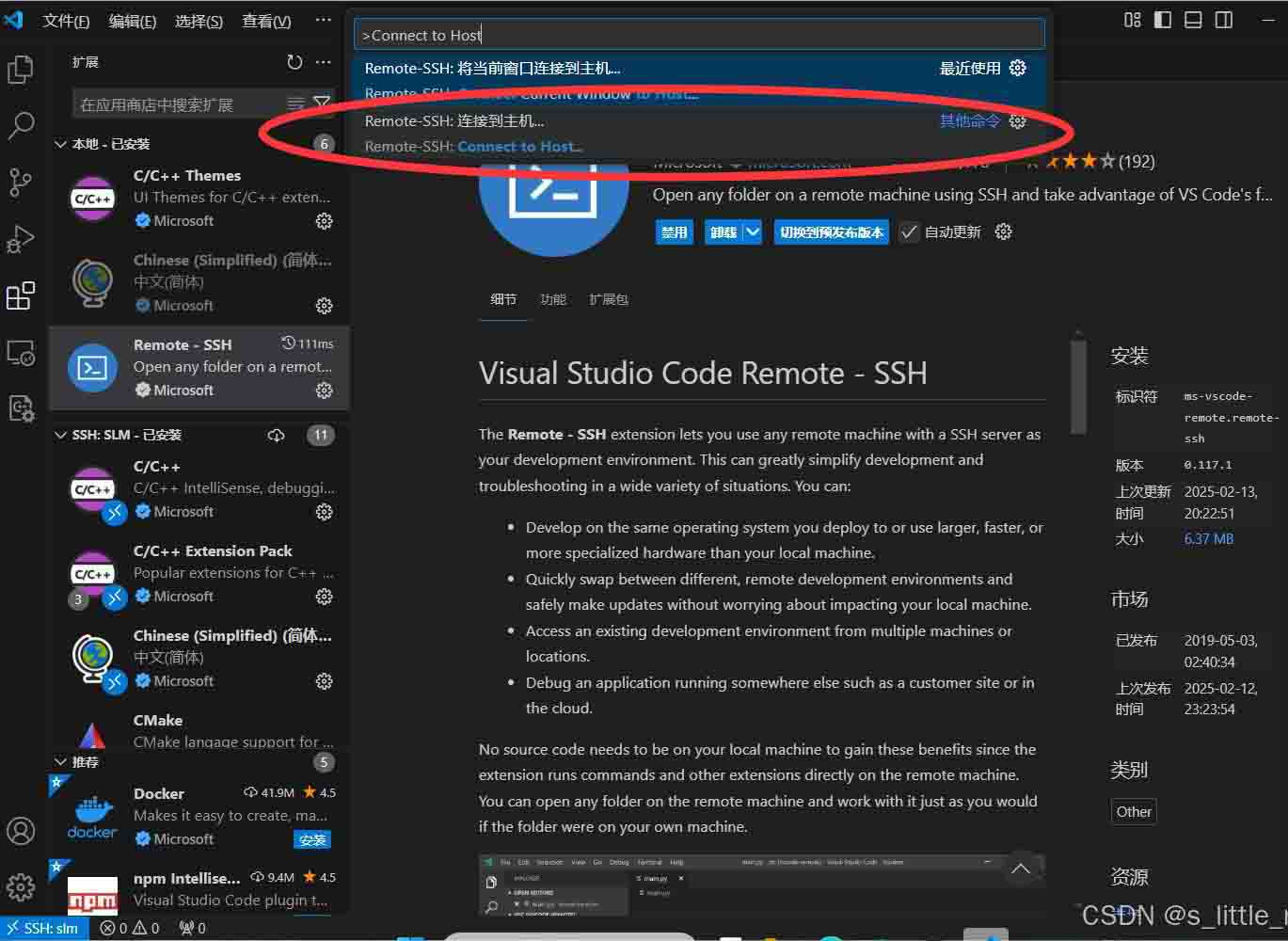 首先呢,在扩展中安装远程登录插件Remote - SSH,