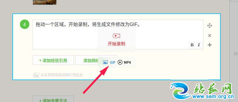 4、拖动一个区域,开始录制,将生成文件修改为GIF。