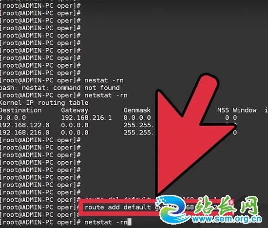4、输入.sudo route add default gw IP Address Adapter。 例如,想要eth0适配器的默认网关更改为192.168.1.254,你可以输入sudo route add default gw 192.168.1.254 eth0。你需要输入用户密码,才能完成命令。