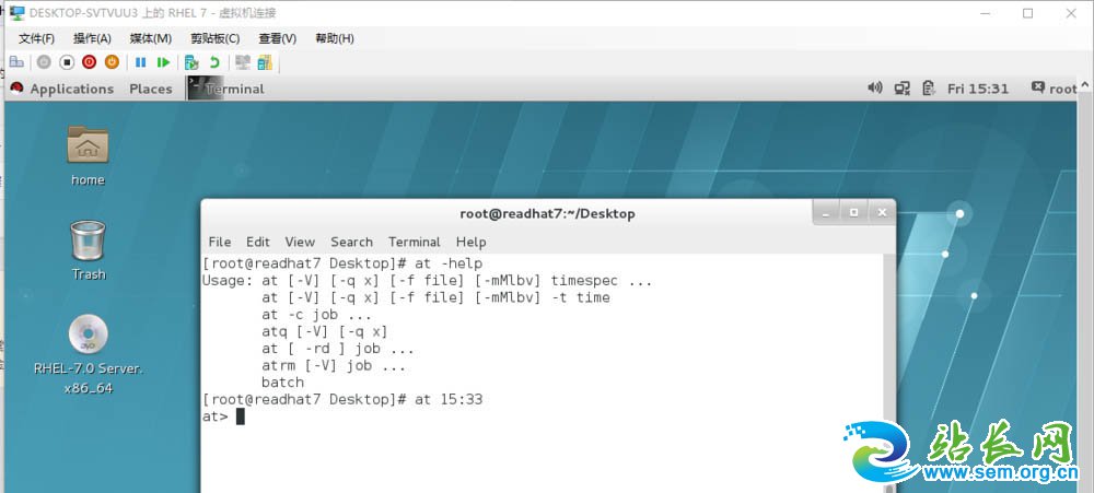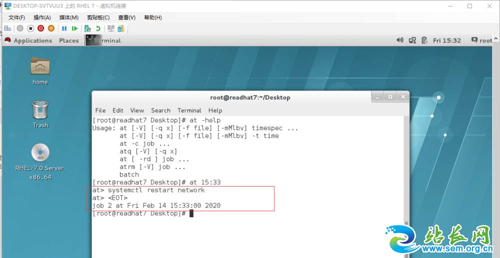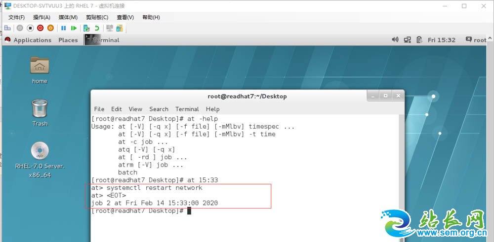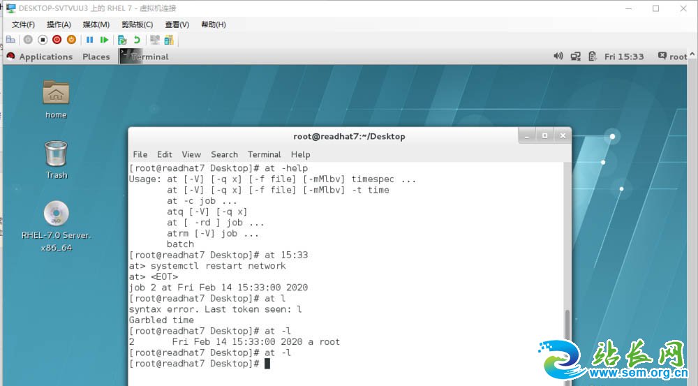 3、如果我们需要在15:33重启网卡服务,先输入命令:at 15:33