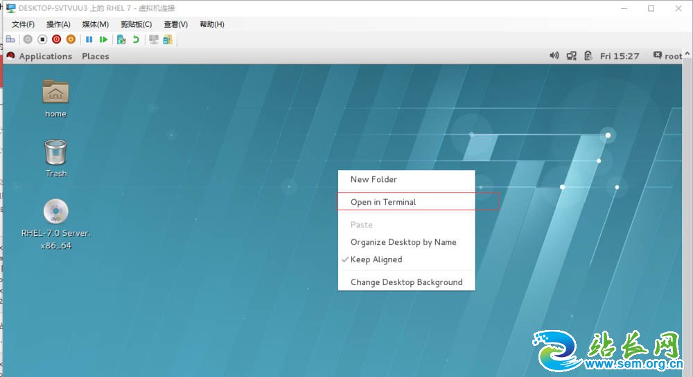 1、打开linux系统,在桌面右击打开terminal窗口,如果是ssh等第三方工具,无需此步骤