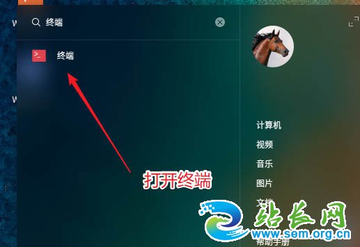 可以通过快捷方式打开终端命令窗口。默认为CTRL+ALT+T键,同时按下即可打开终端。