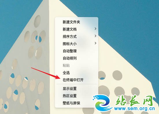 这种方法的特点在于打开后终端自动将当前目录作为工作目录,方便直接执行命令。在桌面右键选择“在终端中打开”即在当前用户的desktop目录下。