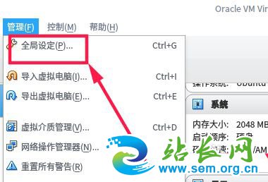 解决上面的问题,首先运行virtualbox,点击”管理“,选择”全局设定“。