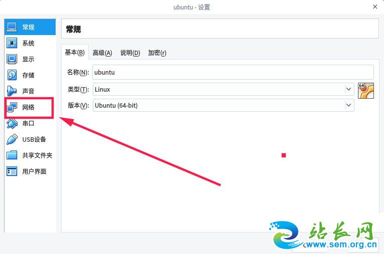 在弹出的窗口中选择“网络”。
