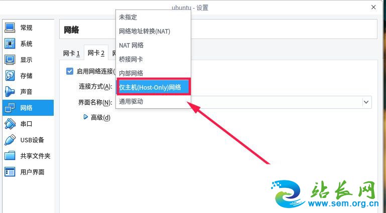 连接方式选择“仅主机(Host-Only)网络。然后保存设置即可。