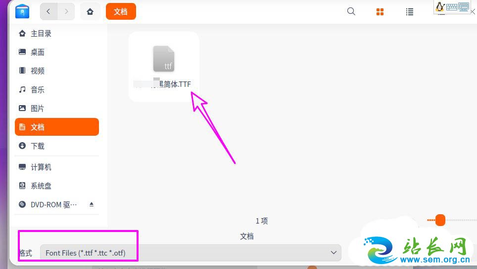 之后在弹出的窗口选择要添加的字体文件,注意一下可以使用的字体文件类型。