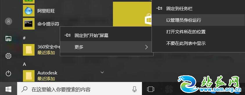 1、首先以管理员身份运行命令提示符。