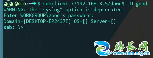 smbclient //192.168.3.5/down$ -U good