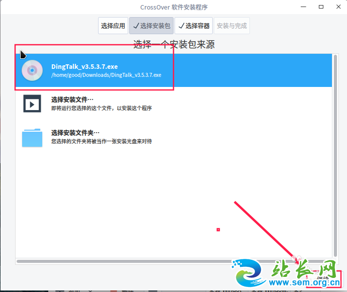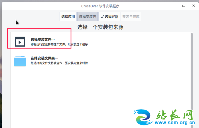 7、在弹出的窗口中选择“选择安装包”——“选择安装文件”。