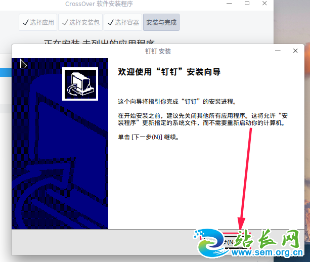 10、这时候就会看到钉钉的安装提示,选择“下一步”。