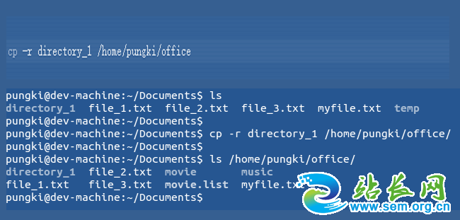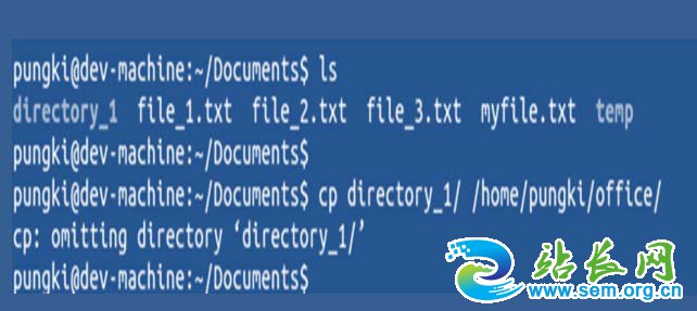 4、在这里需要强调的是如果收到错误的信息,那么目录就不可能被复制到目标的文件夹里面了,再者复制之前需要移除在目录名称里面尾部的斜杠,不然就会收到错误的信息cp: omitting directory directory_1/。