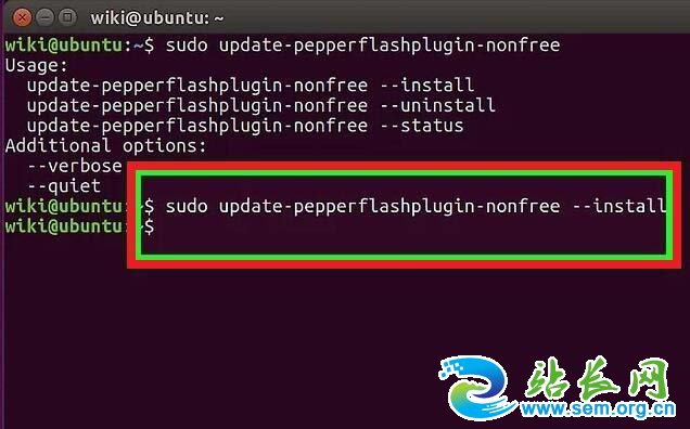 7、输入.sudo update-pepperflashplugin-nonfree回车。