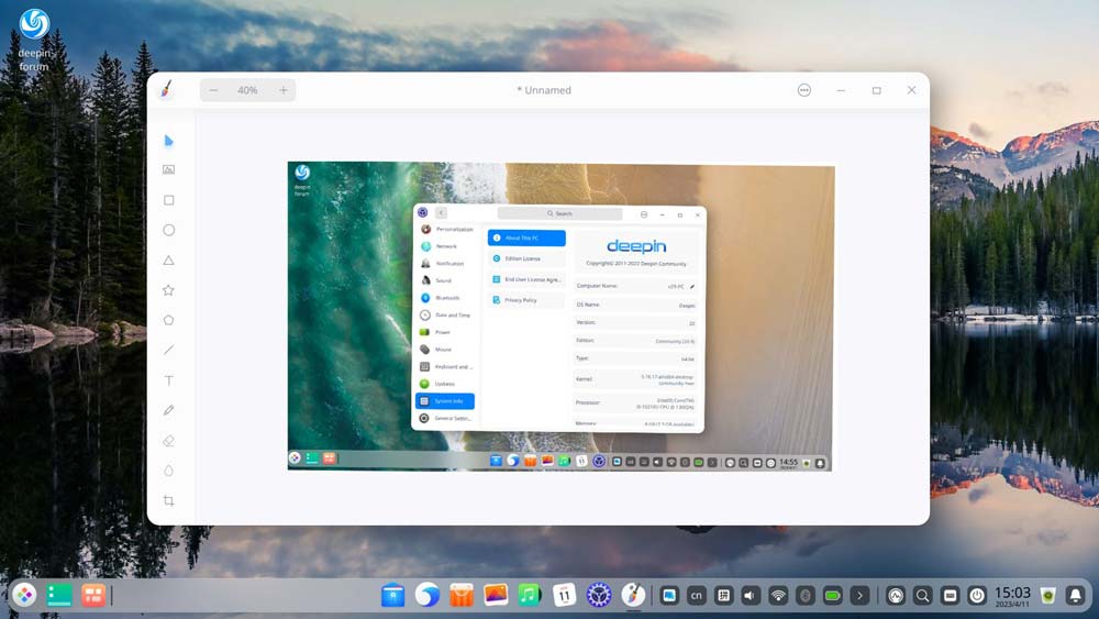 deepin 操作系统的画板应用是一款数字绘画工具,可用于绘制各种类型的插图、漫画、油画、素描等作品,它提供了丰富的绘画工具和功能,以便用户可以自由创作。