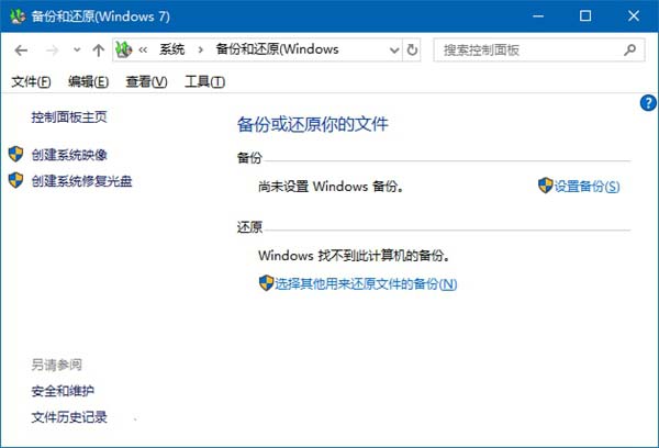 创建系统备份的方法十分简单,你只需打开控制面板,来到系统和安全-备份和还原,点击“设置备份”,然后将你当前的系统备份到另一个盘里(如本地磁盘(D:))。