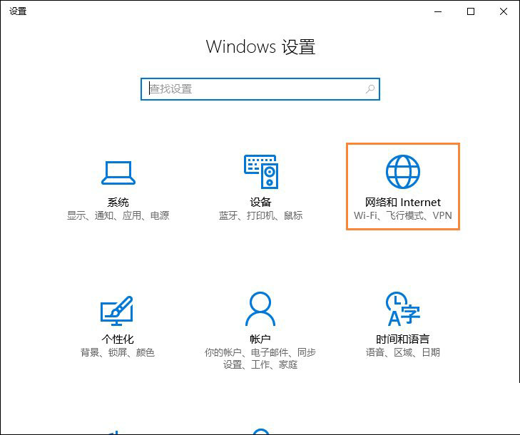 1、打开Win10设置,点击里面的“网络和Internet”。