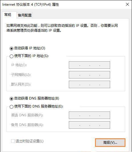 5、在Internet协议版本TCP/IPv4属性窗口,点击底部的“高级”按钮。