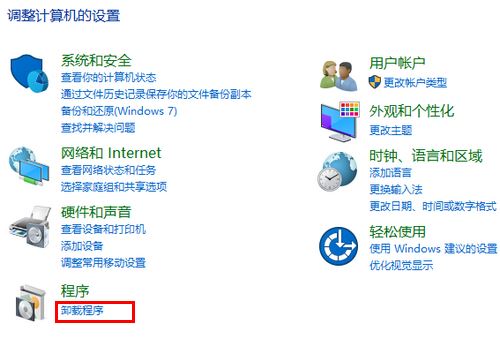 2、在控制面板中点击“卸载程序”。