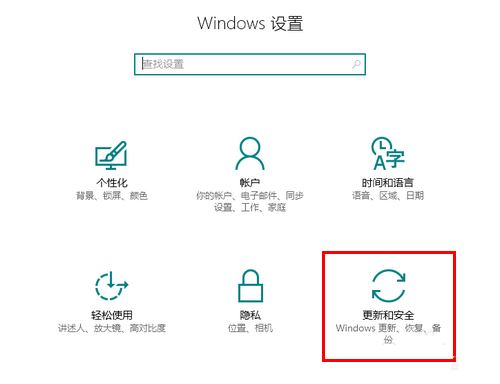 6、在 Windows 设置中点击“更新和安全”。