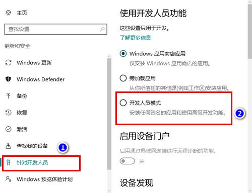 7、然后,先转到“针对开发人员”选项卡,再在右侧选择“开发人员模式”。