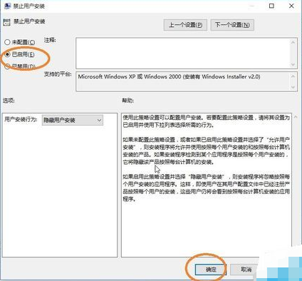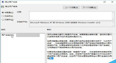 用户在禁止Win10安装软件的同时自己也没法安装软件,因此建议大家把常用的软件安装完毕后再去设置。如果需要取消限制,可以将禁止用户安装配置选项中的“已启用”改为“未配置”就可以了。