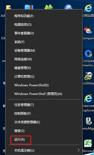右键单击桌面左下角的开始菜单,在弹出的菜单中鼠标单击“运行”命令。