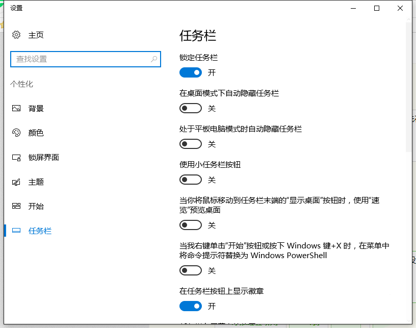 2、现在就来取消掉它,在任务栏的空白栏处,右击,“设置”,出现了个性化选择窗口如下;