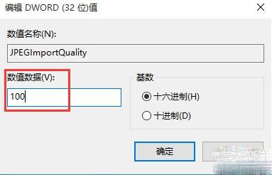 3、双击打开JPEGImportQuality设置界面,将其数值设置为100,点击确定然后重启电脑就可以了。