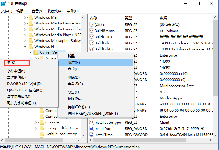 2、在注册表编辑器中按照路径HKEY_LOCAL_MACHINE\Software\Microsoft\Windows NT\CurrentVersion\找到MTCUVC项,如果没有该项,则右键新建一个名为MTCUVC的项;
