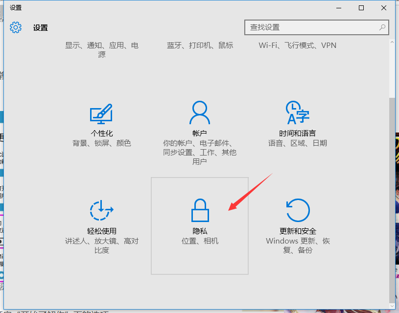 1、按Win+i打开系统设置界面,点击其中的“隐私”选项。