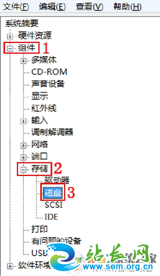 6.3 在弹出的系统信息窗口,展开左侧菜单的组件存储磁盘。如下图所示: