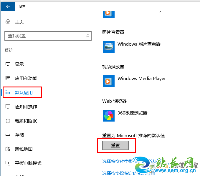 4、在右侧移动到底部,通过点击 重置 按钮您尝试将所有应用都设置为默认值看下情况。