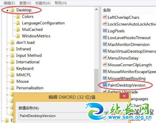 3、在右侧找到PaintDesktopVersion,双击更改数值为0 点击确定保存设置即可!