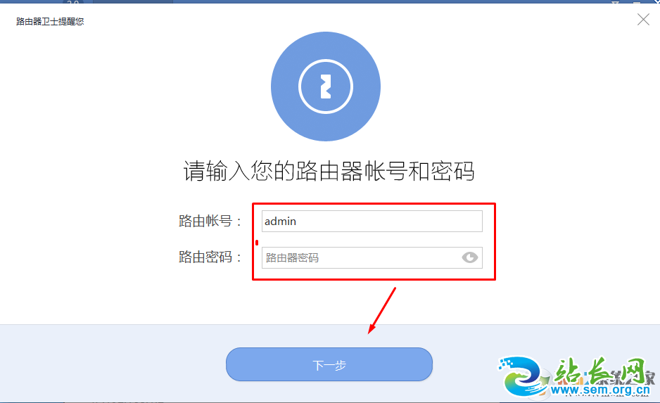 2、此时会出现一个登陆界面,一般用户名和密码都是admin,如果不是那就看看路由器上的铭牌写的什么,如果还不知道,就直接打电话询问给你家安装网络的工作人员;