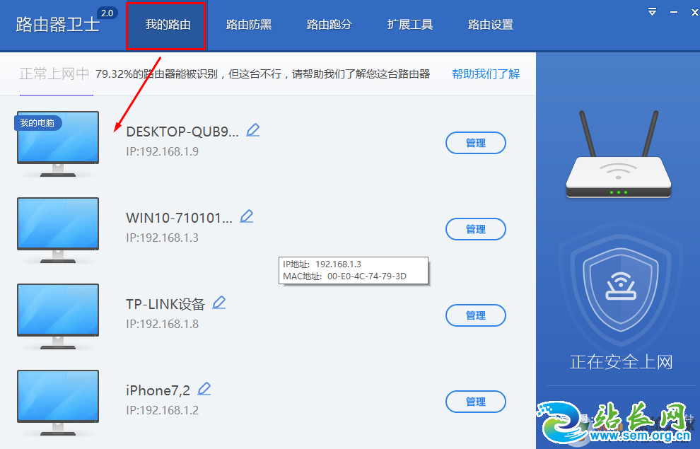 3、在我的路由器中我们就可以看见有几个设备在上网了。看看自己有几台设备连接网络,如果超出自己的设备总和那就是有人蹭网了。建议更换wifi密码。