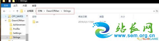 我的文档/DawnOfman,在里面新建一个Strings文件夹,CN文件夹丢进去。