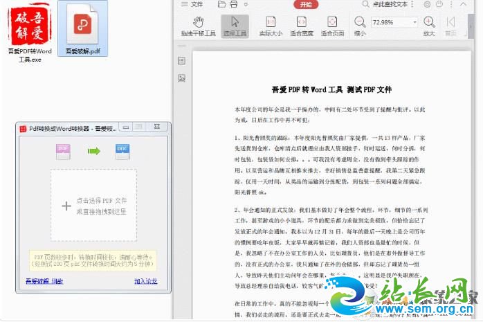 2、下载软件后解压,无需安装,直接运行吾爱PDF转Word工具.exe