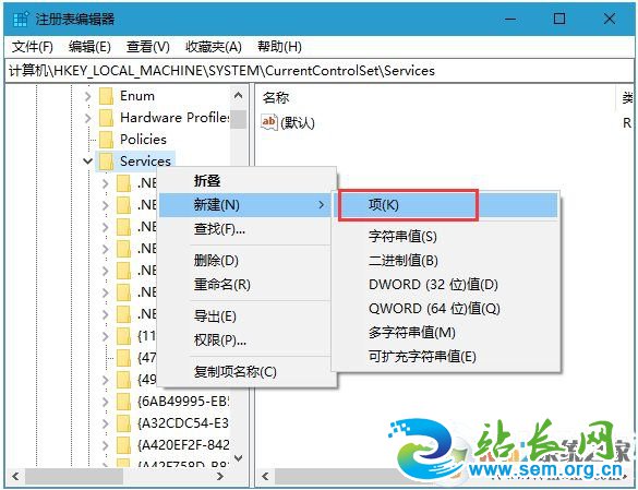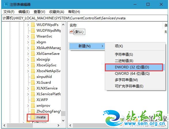 2、注册表编辑器窗口中,依次展开到:计算机\HKEY_LOCAL_MACHINE\SYSTEM\CurrentControlSet\Services\nvata,需要特别注意的是,如果没有找到nvata文件,可以右键点击services新建一个子项将其命名为nvata,如下图所示;