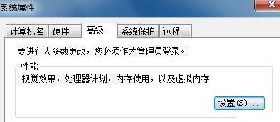 在弹出的对话框中切换到“高级”选项,单击“性能”区域内的“设置”按钮(如图2):