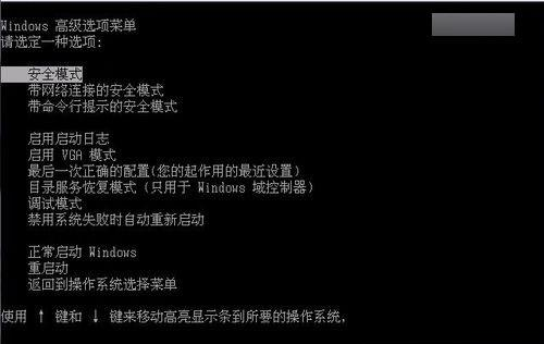 4、再开机按F8键,使用上下箭头调整到安全模式,按回车键进入安全模式;