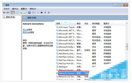 2、然后找到并将“Network Connections”设置为“手动”并启动;