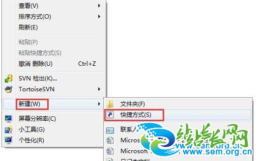 1、在桌面的空白处点击右键---【新建】----【快捷方式】;
