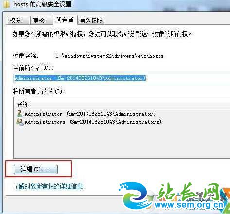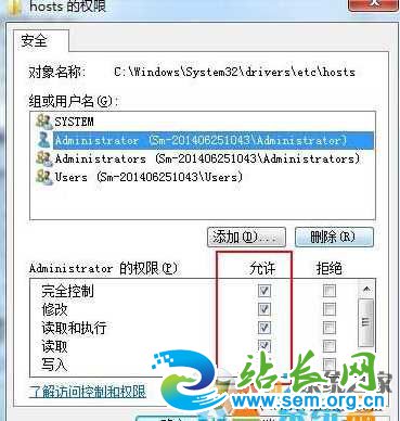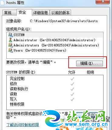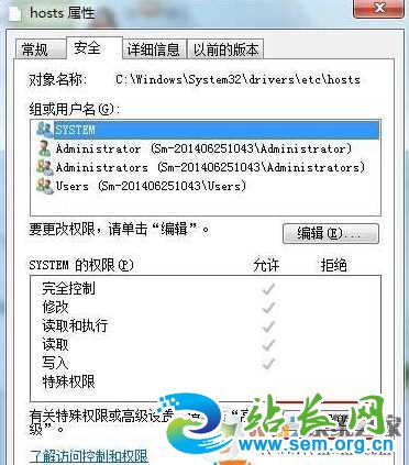 7、点击编辑,选中当前登录帐户,将权限设置为全部允许;