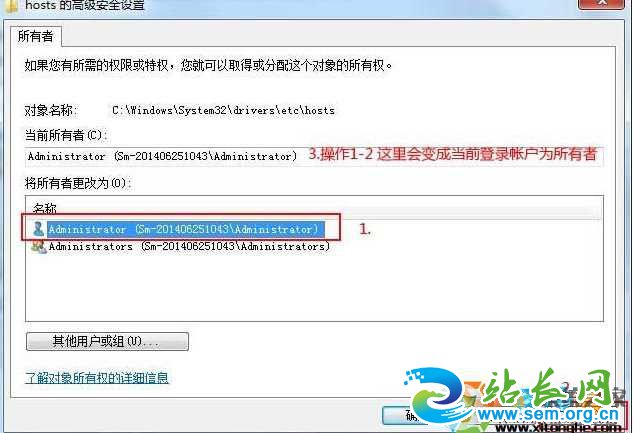 5、在下方“将所有者更改为”栏目中选择当前登录系统的帐户,然后点击“应用”;